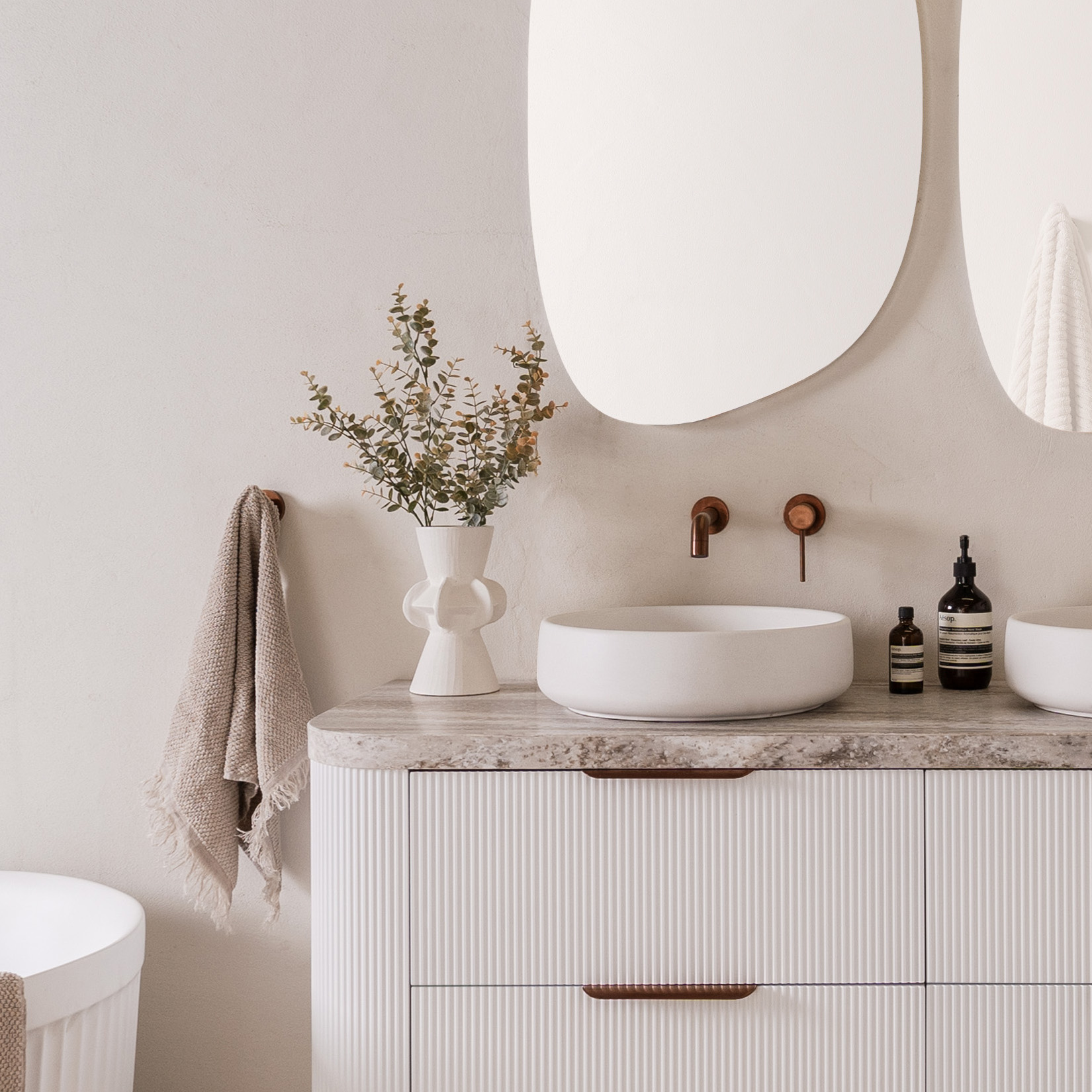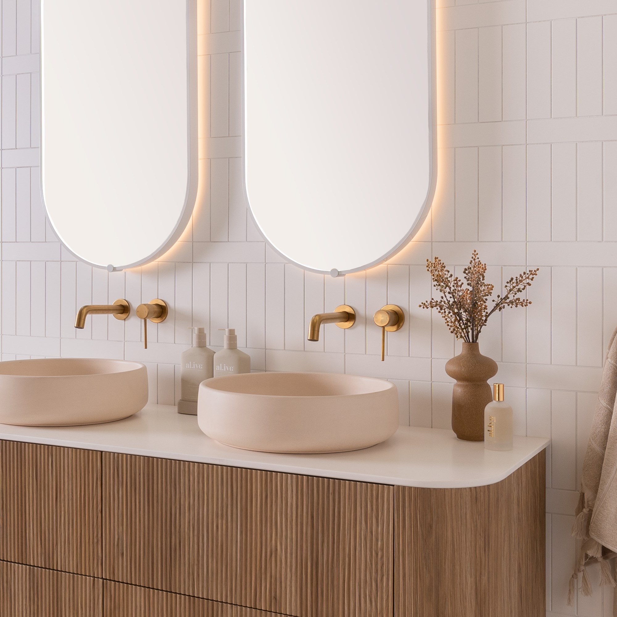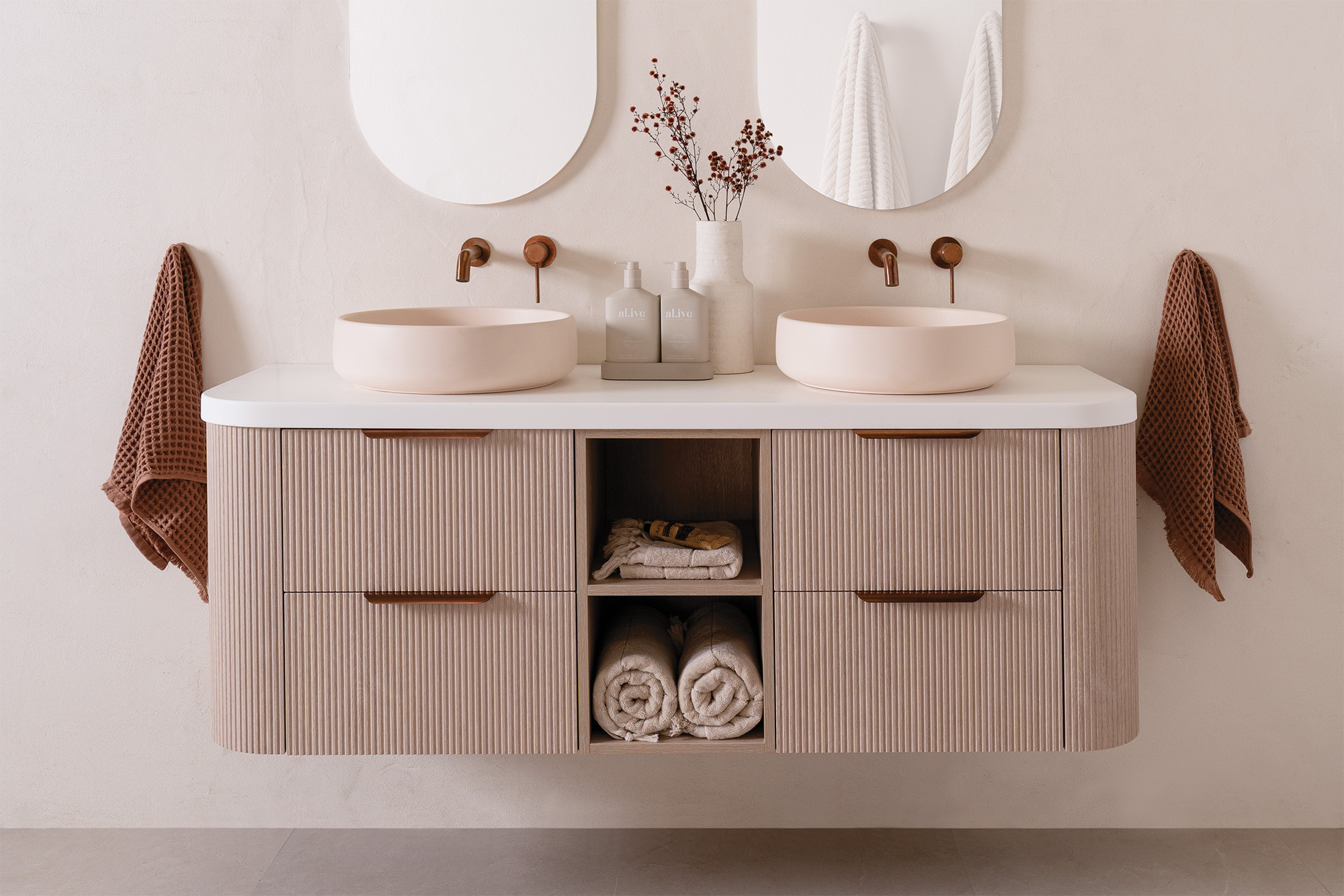 Choose from all benchtop options: 12mm Durasein & 20mm Cherry Pie (included in pricing). Upgrade to Statement or Royale benchtop available, Durasein only, surcharge applies.