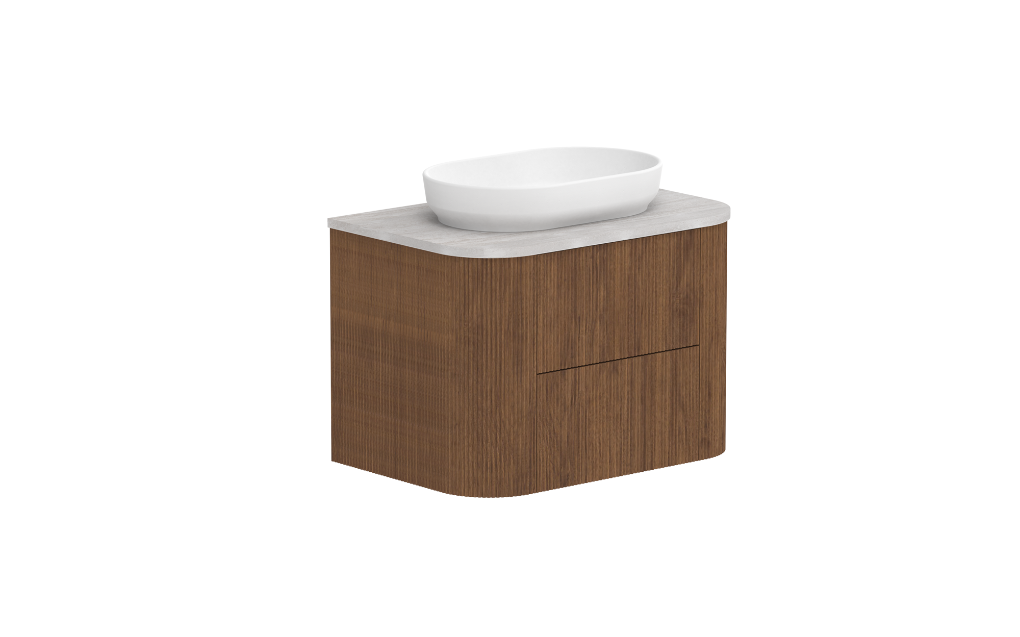 Bespoke curved thermolaminated v-groove cabinetry available in select cabinet finishes only.