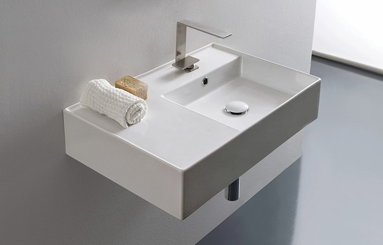 Create the illusion of space with a wall hung basin. Perfect for commercial applications or where storage is not required, wall basins can be a cost-effective vanity solution. Wall basins are available with a range of options, including a large basin, extra bench space, or small space solutions. Make a feature of your plumbing with a bottle trap and consider pairing with a mirrored cabinet or floating cabinet below the basin for additional storage.